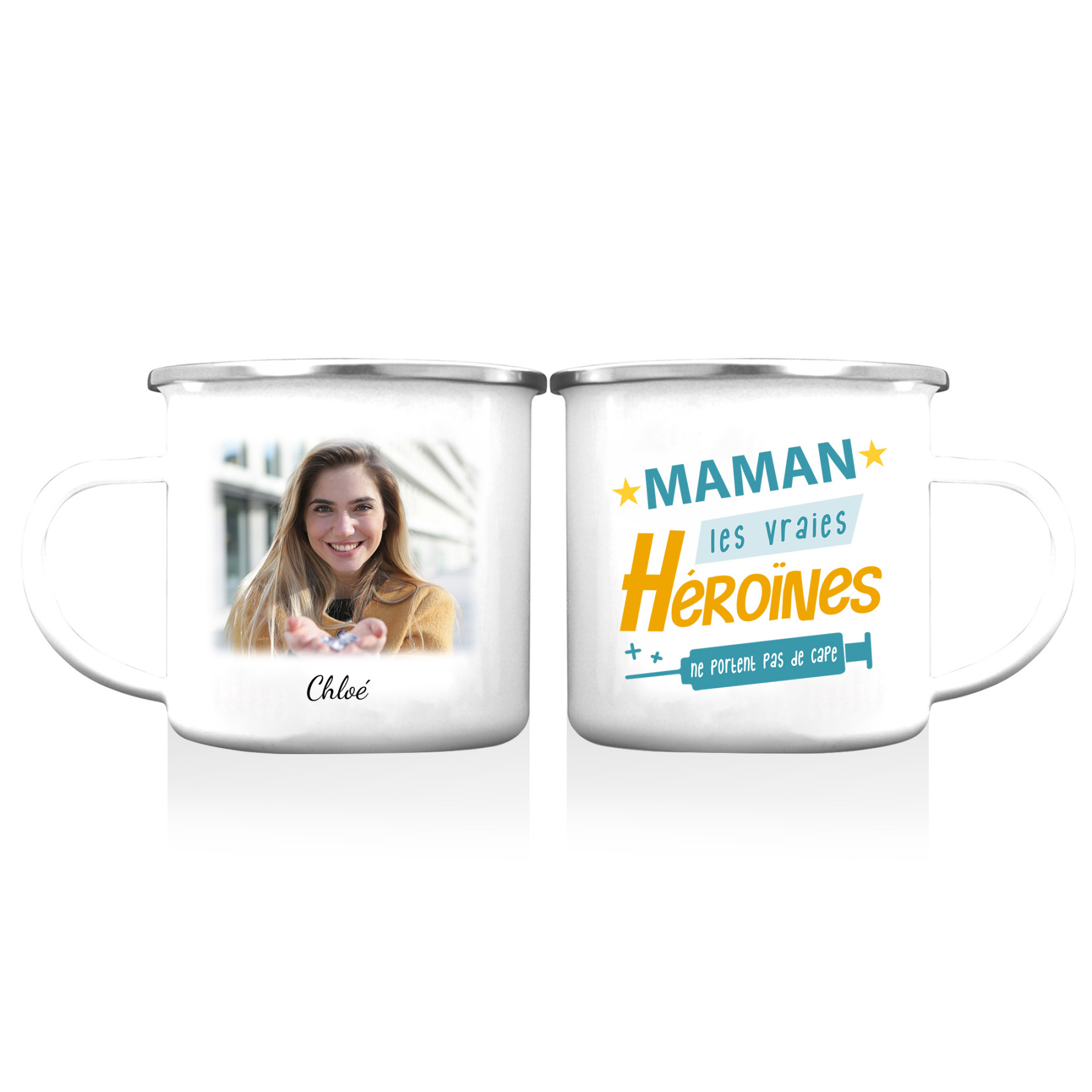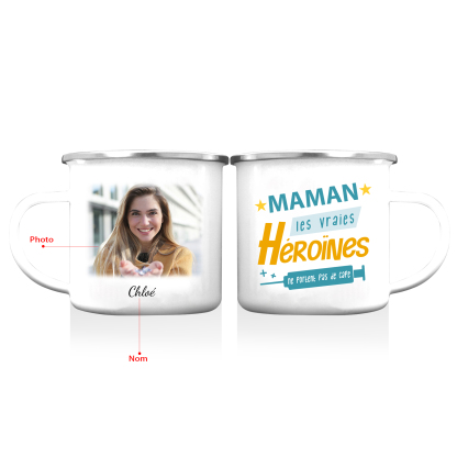 Tasse émaillée 1 Prénom et Photo Personnalisés cadeau pour Maman