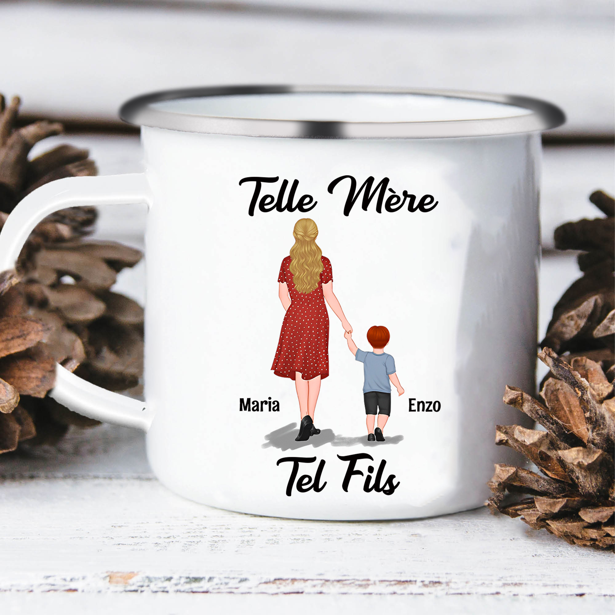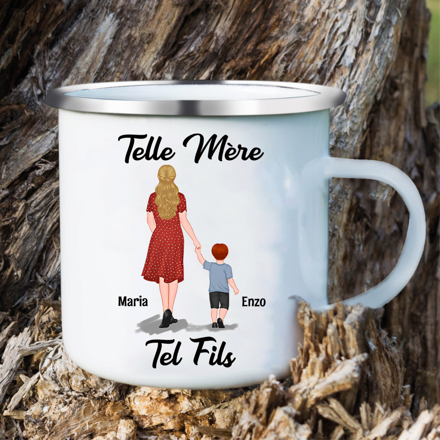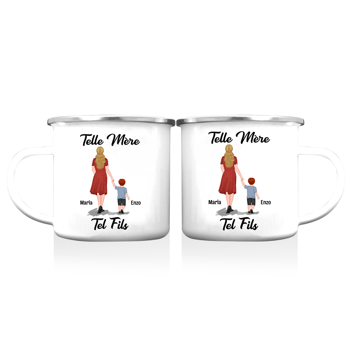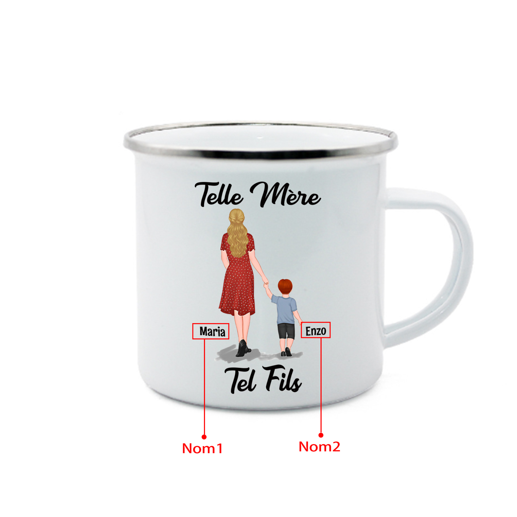 Tasse émaillée 2 Prénoms Personnalisés pour Maman et Fils
