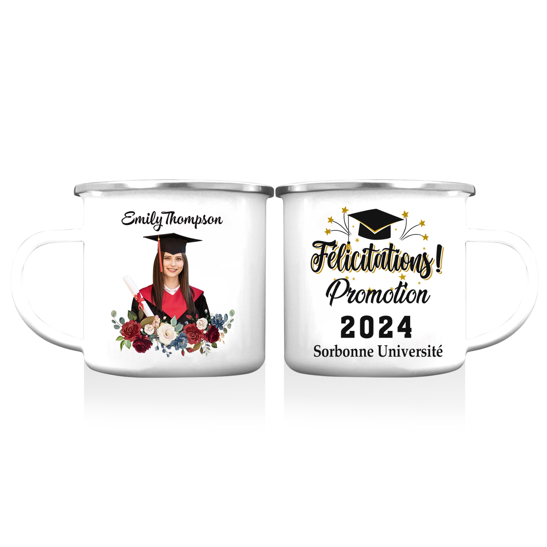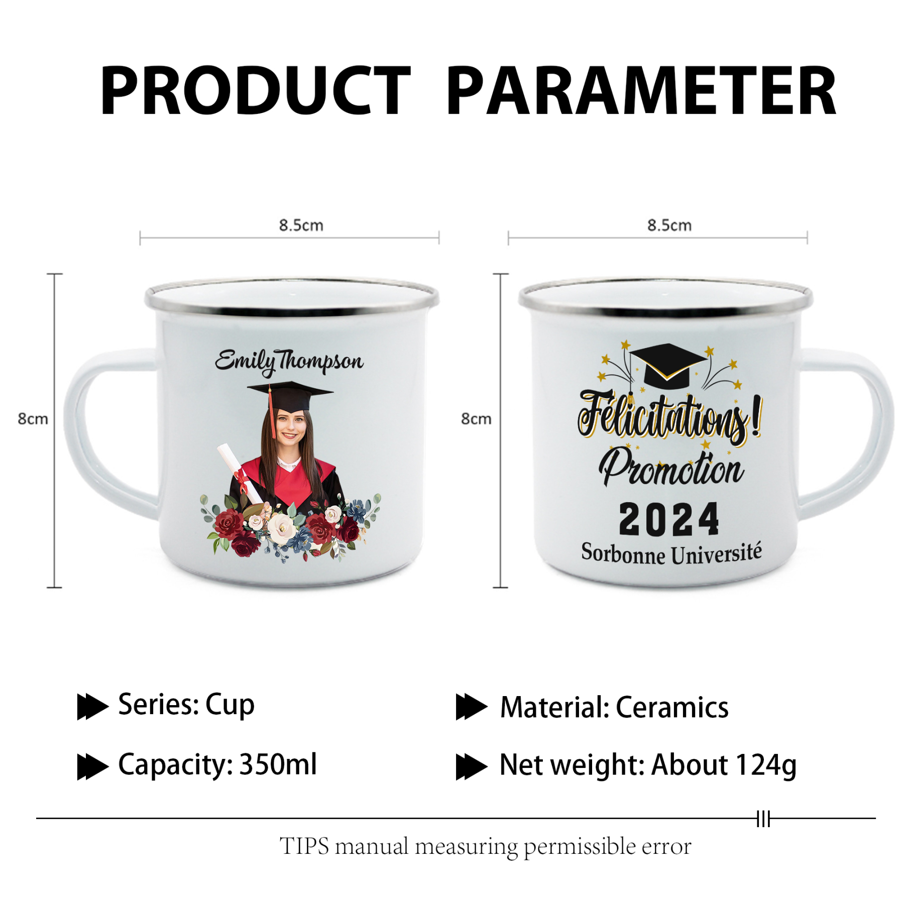 Tasse émaillée Diplômé 1 Prénom et Photo Personnalisés avec Année et Texte Cadeau de remise des diplômes