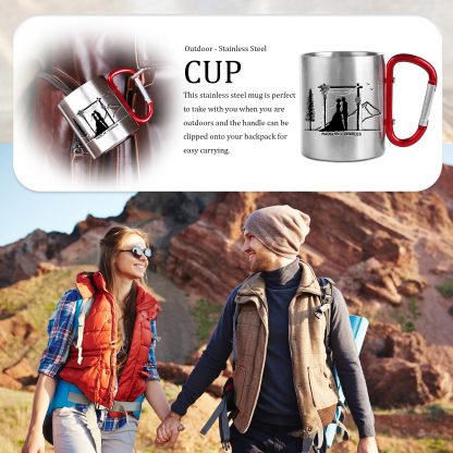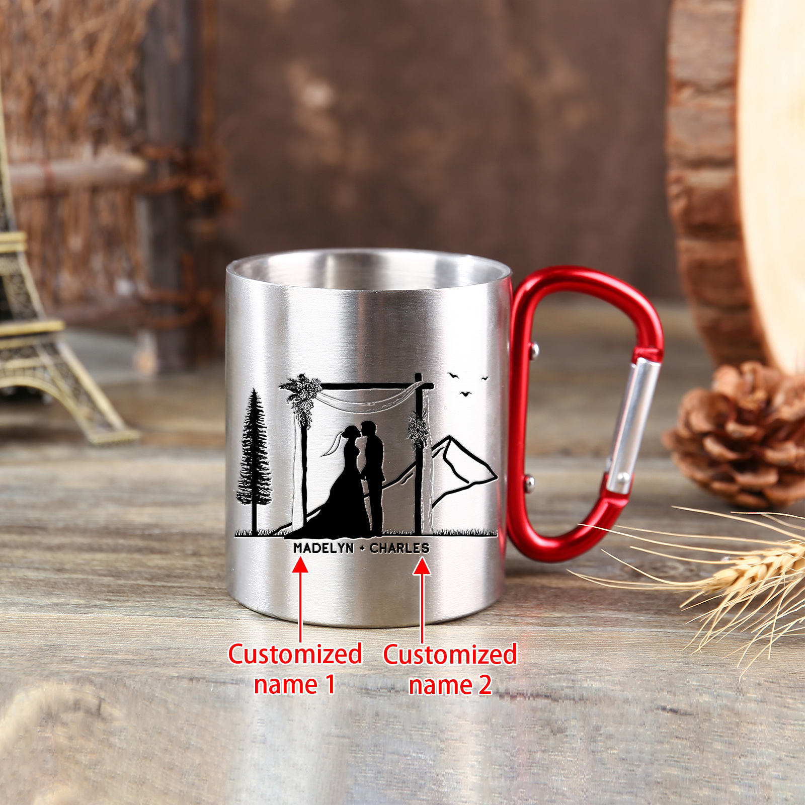 Tasse randonnée en inox 2 Prénoms Personnalisés pour Couple avec Mousqueton